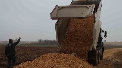 Şanlıurfa Büyükşehir Belediye Başkanı Mehmet Kasım Gülpınar talimatıyla, Suruç Şahinler-Binatlı mezarlık yolunda yağışa rağmen mekanik serme ve sıkıştırma çalışmaları başladı.