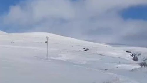 Bitlis'in Tatvan ilçesi Kıyıdüzü ve Sarıkum kırsalında onlarca domuz karla kaplı arazide görüntülendi; köylüler şaşkın.