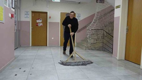 Mehmet Tarhan İlkokulu hizmetlisi Mustafa Güler, 2015'ten beri sergilediği disiplin ve şefkatle öğrenciler, veliler ve yönetim tarafından örnek gösteriliyor.