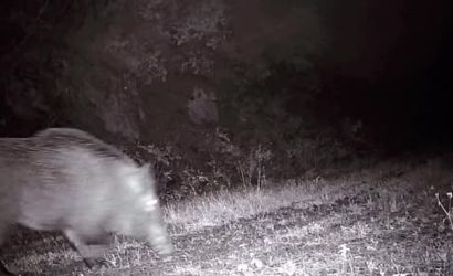 Kaydedilen görüntülerde, 18 yaban domuzunun peş peşe kameranın önünden geçtiği; bir süre çevrede dolaştıktan sonra ormanlık alana doğru ilerlediği görülüyor.