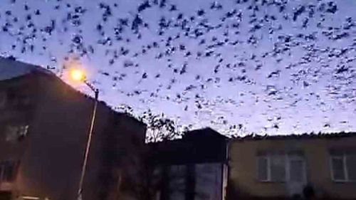 Tekirdağ Muratlı’da sabahın erken saatlerinde yüzlerce kuş Atatürk Caddesi üzerinde uçuşarak mahalleye görsel şölen sundu.