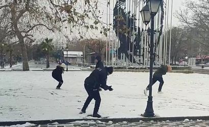 Sabah saatlerinde sahile gelen çocuklar, beyaz örtü üzerinde kartopu oynamaya başladı. Görevli polis ekipleri çocukların neşesine kayıtsız kalmayarak oyuna katıldı ve birlikte eğlenceli anlar yaşandı.