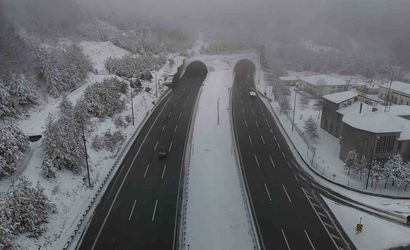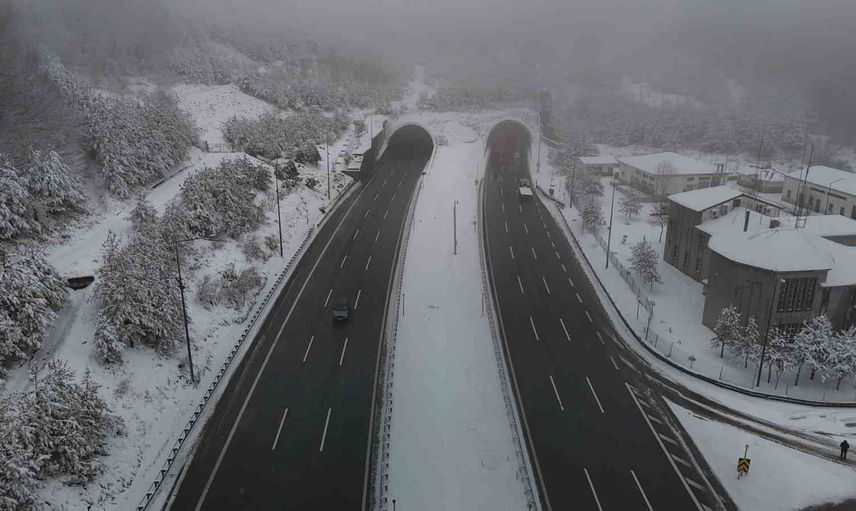TEM Otoyolu'nun Bolu Dağı Tüneli kesiminde etkili olan kar yağışı, bölgeyi beyaza bürüdü. Karayolları ekipleri yolun kapanmaması için yoğun küreme ve tuzlama çalışmaları yürütüyor.