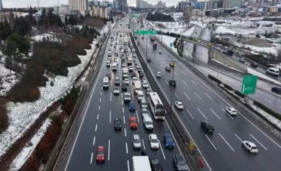 İSTANBUL'DA ETKİLİ OLAN KAR YAĞIŞININ ARDINDAN AKŞAM SAATLERİNDE TEM OTOYOLU MAHMUTBEY GİŞELERİ'NDE OLUŞAN TRAFİK HAVADAN GÖRÜNTÜLENDİ.