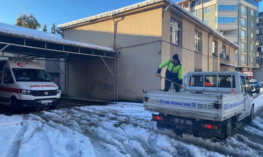 Terme Belediyesi, karla mücadele çalışmalarını yağışın etkisini kaybedeceği sürece kadar aynı titizlikle sürdüreceğini duyurdu.