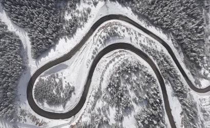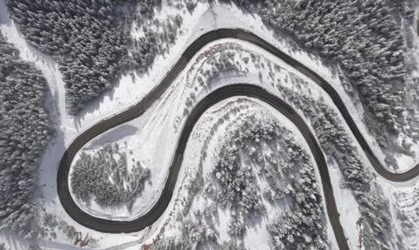 Gümüşhane-Şiran arasındaki en kısa güzergah olan 2 bin rakımlı Tersun Dağı Geçidi, etkili kar yağışının ardından kartpostallık görüntülere sahne oldu. Kıvrım kıvrım yolları ve dik rampalarıyla sürücülerin 'korkulu rüyası' olarak bilinen geçitte, karın ortaya çıkardığı manzara havadan görüntülendi.