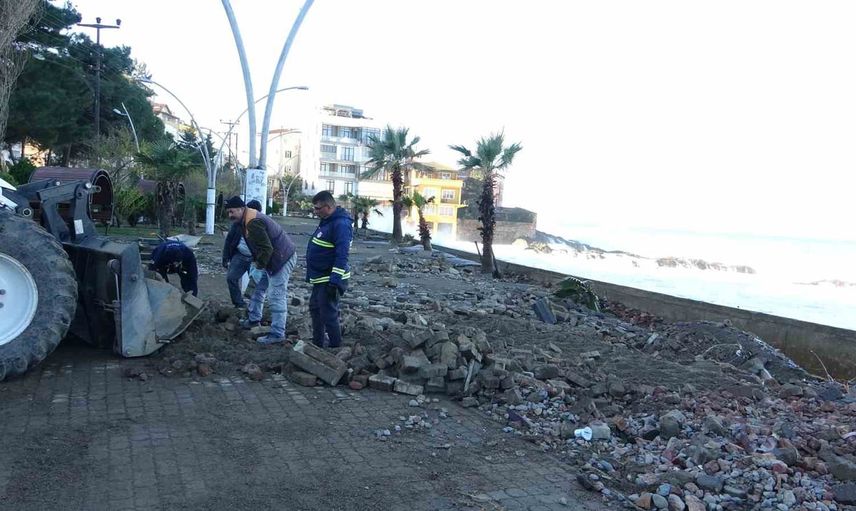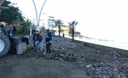 Fırtına ve dev dalgaların etkili olduğu bölgede hasar tespit çalışmaları sürüyor. Belediye ekipleri sahil düzenleme ve onarım çalışmalarına başlayarak bölgedeki altyapı ve yürüyüş yollarında ilk müdahaleyi gerçekleştirdi.