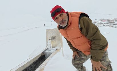 Çeşmenin oluk kısmında uzun buz sarkıtları oluşurken, karla kaplanan yaylada soğuk hava görsel olarak kartpostallık manzaralar ortaya çıkardı.