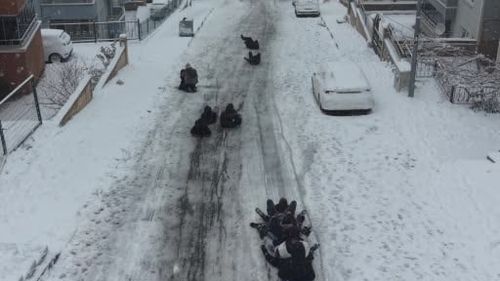 Tokat'ta vatandaşlar tepsi ve poşetlerle dik yokuşlarda kayarak karın keyfini çıkardı; Başçiftlik'te çatı saçaklarında yaklaşık 5 metre buz sarkıtları oluştu.