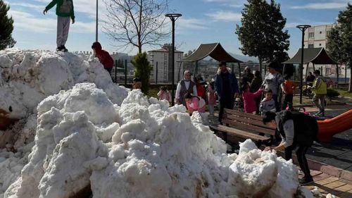Toprakkale Belediyesi, Karataş Mahallesi Kale Park'a kamyon dolusu kar getirerek çocukların yarıyıl tatilinde kar sevincini yaşattı.