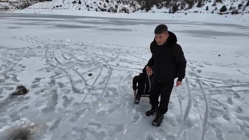 Tufanbeyli'de gece sıcaklığının -25°C'ye inmesiyle Kürebeli Barajı tamamen buzla kaplandı; çocuklar gölde kardan adam yaptı, drone görüntüleri çekildi.