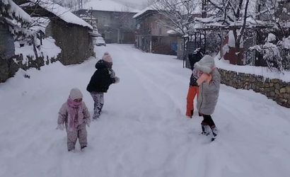 Minikler duygularını, "Kar yağdı, çok mutluyuz. Gün boyu oyun oynadık" sözleriyle ifade etti.