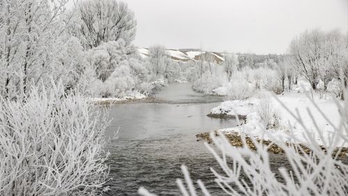 Tunceli'nin Ovacık ilçesinde soğuk hava, dağları sisle kaplarken, ovalardaki ağaç ve bitkileri kırağı ile kaplandı.