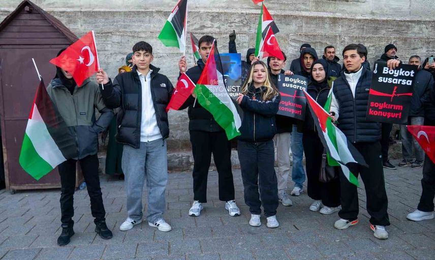 İstanbul, 2026’nın ilk sabahına zulme karşı ayağa kalktı. Karla örtülü sokaklarda tekbirler ve "Sinmiyoruz, susmuyoruz, Filistin’i unutmuyoruz" sloganlarıyla on binler Ayasofya-i Kebir Camii, Sultanahmet Camii, Süleymaniye Camii, Fatih Camii ve Yeni Camii çevresinde sabah namazını kıldıktan sonra kortejler halinde Galata Köprüsü'ne yürüdü. Türk ve Filistin bayrakları omuz omuza dalgalandı, kalabalığın kararlılığı alanda hissedildi.