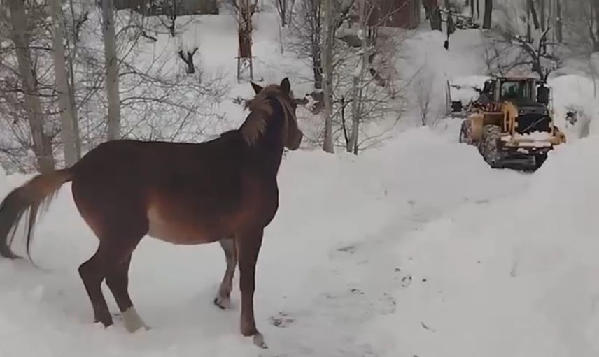 Yoğun kar yağışı ve tipi nedeniyle köy yolunun ulaşıma kapandığı bilgisi üzerine Hakkari İl Özel İdaresi ekipleri, iş makineleriyle yol açma çalışması başlatarak bölgeye ulaştı. Uzun ve zorlu çalışmaların ardından köye erişen ekipler, zorlu kış şartlarında bitkin halde buldukları atları güvenli bölgeye tahliye etti.