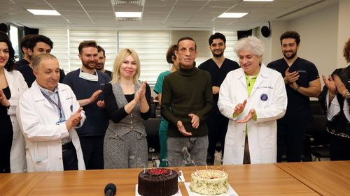 Türkiye’nin ilk yüz nakli hastası Uğur Acar, naklin 14. yılında Prof. Dr. Özlenen Özkan ve Prof. Dr. Ömer Özkan ile bir araya geldi; yaş pastasını kesti, teşekkür etti.