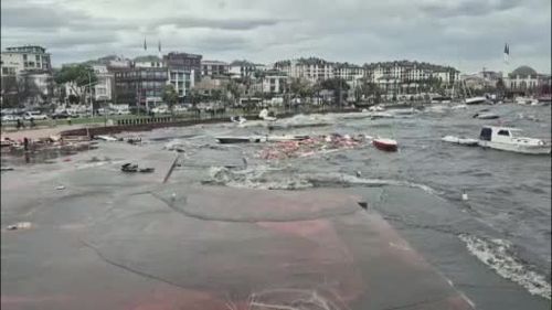İstanbul ve Marmara Denizi'nde etkili fırtına Tuzla'da denizin taşmasına, yolların göle dönüşmesine ve sahil banklarının devrilmesine neden oldu.