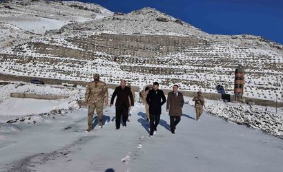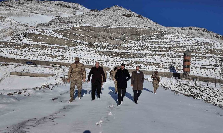 Tuzluca Kaymakamı Abdüllatif Yılmaz, Kaymakam Adayı Eftal Palabıyık ile birlikte ilçede yapımı devam eden Ünlendi Barajı inşaat alanında incelemelerde bulundu.