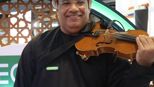 Ummanlı kemancı Nasır el-Kindi, Maskat'taki fuarda Türk ve Filistin müziklerini performansıyla beğeni topladı.