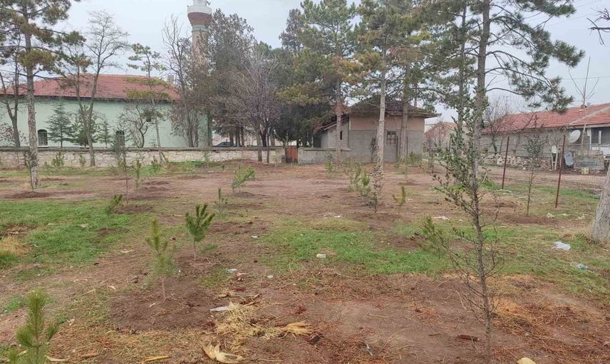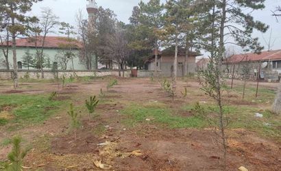 Emirdağ ilçesine bağlı Umraniye köyünde yaşayan vatandaşlar, imece usulü bir araya gelerek gönüllü çalışmayla 300 fidanı okul ve camii bahçelerine dikti.