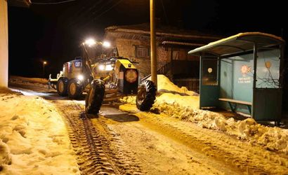 Kapanan köy yollarının yeniden ulaşıma açılması için iş makineleriyle yol açma çalışmaları gerçekleştirildi. Ulaşımın aksamaması adına tuzlama ve yol güvenliği çalışmaları aralıksız sürdürüldü.