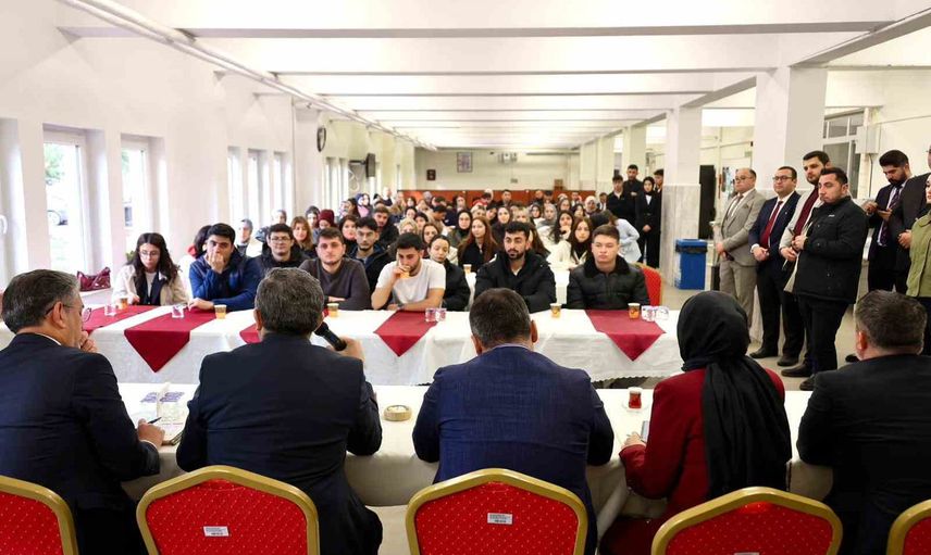Gerçekleştirilen buluşmada Vali Sözer, öğrencilerin yönelttiği soruları yanıtladı ve mezuniyet sonrası meslek hayatı, kariyer planlaması ve çalışma yaşamı konularındaki tecrübelerini paylaştı. Öğrencilerin eğitim süreçleri, beklentileri ve hedeflerini dinledi.
