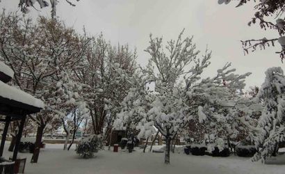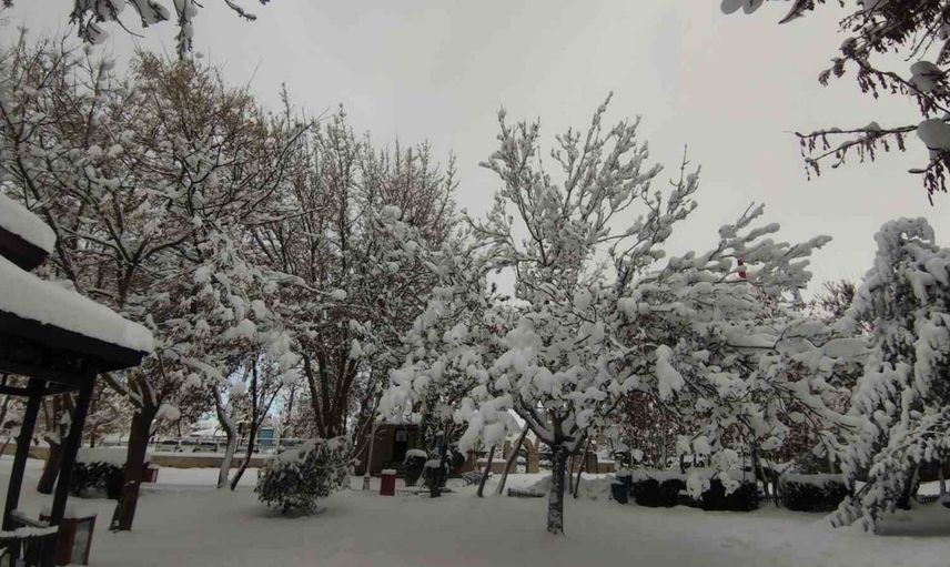 Gece de etkisini sürdüren karla birlikte ağaçların üzeri tamamen beyaz örtüyle kaplandı. Karın ağırlığıyla eğilen dallar, Van’ın doğal güzelliğini bir kez daha gözler önüne serdi.