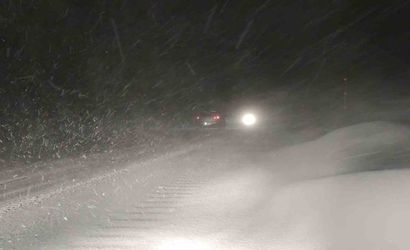 Van'da akşam saatlerinde etkili olan kar yağışı ve tipi, Kurubaş Geçidi çevresinde ulaşımı olumsuz etkiliyor.