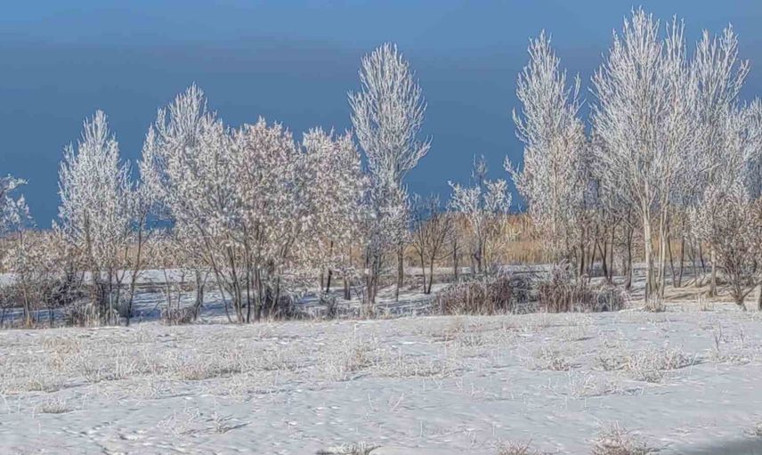 VAN’DA ETKİSİNİ ARTIRAN DONDURUCU SOĞUKLAR, TABİATI ADETA BEYAZ BİR ÖRTÜYLE SÜSLERKEN, GECE HAVA SICAKLIĞININ GECE SIFIRIN ALTINDA DÜŞMESİYLE BİRLİKTE, AĞAÇLAR KIRAĞI TUTARAK KRİSTALLEŞTİ.