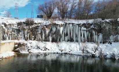 Van’ın Erciş ilçesi Koçköprü Kanyonunda oluşan metrelerce yüksekliğindeki buz sarkıtları ziyaretçilerin ilgisini çekiyor. Geçtiğimiz hafta etkili olan kar yağışının ardından gündüz sıcaklıkları 3 ila 5 derece seyrederken, geceleri sıcaklıklar -10 derece ve daha altına iniyor. Gündüz eriyen kar kütleleri gece donduğunda, kanyon duvarlarında dev buz sarkıtları meydana geliyor.