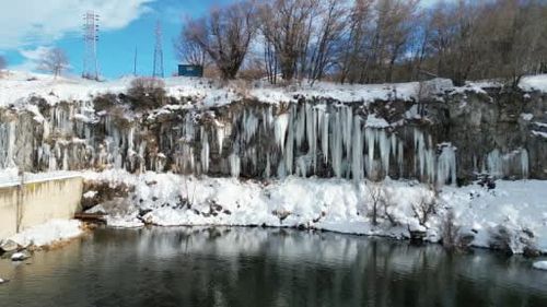 Van Erciş Koçköprü Kanyonu'nda Metrelerce Buz Sarkıtları