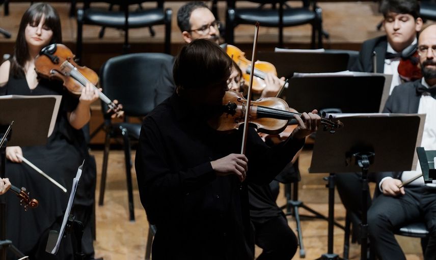 İkinci Uluslararası Suna Kan Keman Yarışması'nda 3'üncü olan Rus keman virtüözü Viacheslav Ermolaev (önde) Ankara'da konser verdi. Hacettepe Üniversitesi Ankara Devlet Konservatuvarı Konser Salonu'nda gerçekleştirilen ödül konserleri kapsamında keman virtüözü Ermolaev, Burak Tüzün şefliğinde Hacettepe Üniversitesi Senfoni Orkestrası ile sahne aldı.
