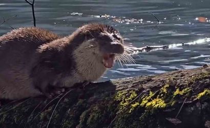 Dünya Doğa ve Doğal Kaynakları Koruma Birliği (IUCN) tarafından nesli tükenme tehlikesi altındaki türler arasında yer alan su samuru, görüntülerde gölden çıkarak çevreyi inceledi; ardından tekrar suya girerek gözden kayboldu.