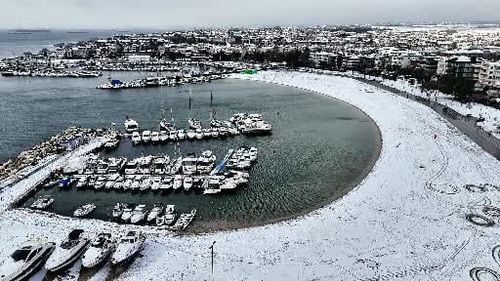İstanbul'da dün başlayan ve gece saatlerinde etkisini artıran kar yağışı sonrası Bakırköy'deki Yeşilköy sahili beyaza büründü; havadan görüntüler ilgi çekti.