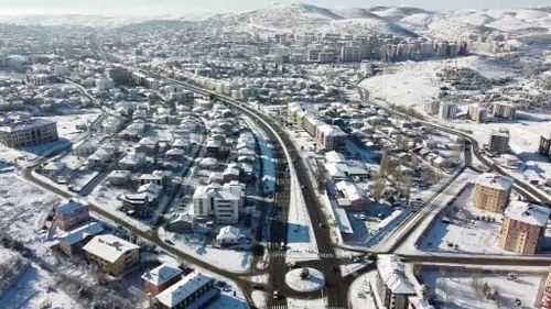 Yozgat’ta soğuk hava ve kar yağışı kent merkezindeki 3 göletin yüzeyini dondurdu; Cevdet Dündar, Kirazlı ve Spor Vadisi göletleri dronla görüntülendi.