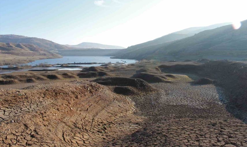 Baraj havzasında görülen çatlamış topraklar ve kuraklığın etkileri, dron görüntüleriyle belgeledi.