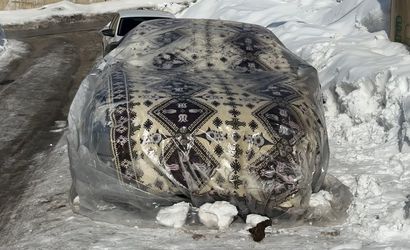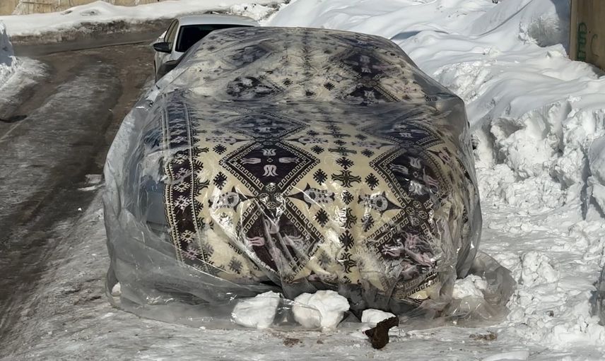 Dondurucu soğuk nedeniyle vatandaşlar araçlarının yakıt depoları ve motor aksamlarının donmasını engellemek için otomobillerini branda, battaniye ve naylon ile sararak önlem alıyor.