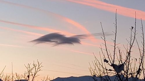 Yüksekova Armutdüzü'nde gün batımında rüzgar ve soğuk havanın etkisiyle tek bir bulut, şekilden şekile girerek mahalle sakinlerine görsel şölen sundu.