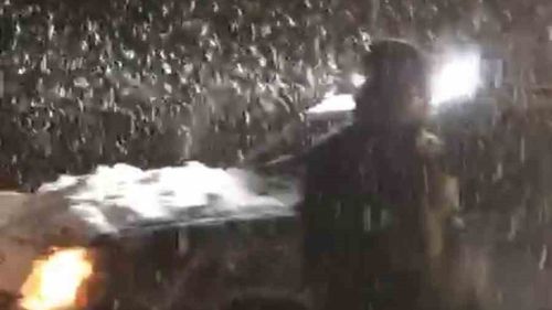 Yüksekova'da yoğun kar ve tipi yolları kapatırken, Yüksekova-Şemdinli kara yolunda mahsur kalan bir vatandaş fırtınaya rağmen namaz kıldı.
