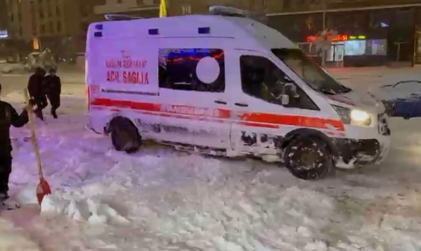 İlçe merkezindeki Cengiz Topel Caddesi üzerinde seyir halindeyken yoğun kar ve buzlanma nedeniyle kontrolden çıkan bir ambulans kara saplandı. Sağlık ekipleri kendi imkanlarıyla kurtulamayınca yetkililere haber verildi.