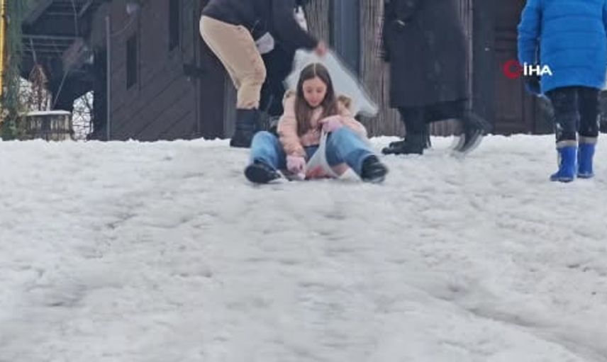 Şehir merkezinde ve yüksek kesimlerde yağan karı fırsat bilen çocuklar, poşetlerle kayarak eğlendi. Çocuğuyla birlikte karda vakit geçiren Umut Atay, kar yağışının ardından geldiklerini ve eğlendiklerini ifade ederek, "Geldik eğlendik. Şimdi de eve dönüyoruz" dedi.